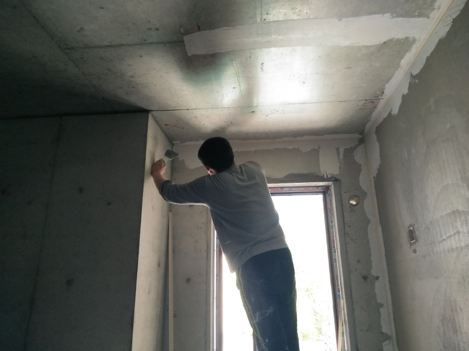 室內(nèi)房間:墻面用抗裂砂漿找平垂直,陰陽下角線,用821膩子批二遍。