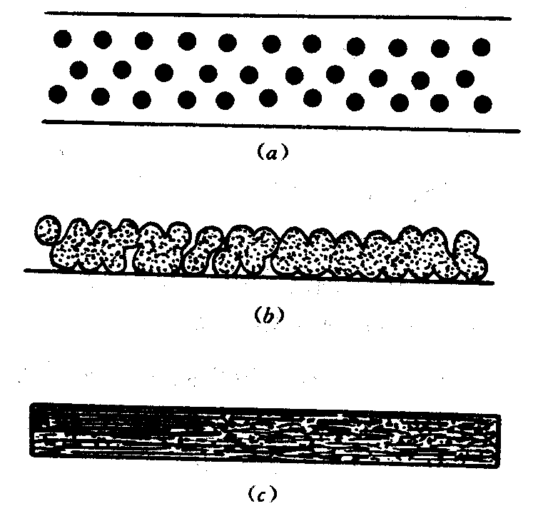 這些顆粒在乳膠漆中以雙電層和屏蔽穩(wěn)定的作用保持著分散的狀態(tài),在施工成濕膜后,水分逐漸揮發(fā),分散著的顆粒逐漸靠攏。當(dāng)接近到某一程度時(shí),鄰近的顆粒就緊緊地?cái)D在一起,失去了運(yùn)動的自由而成凝膠狀。在水揮發(fā)將盡時(shí),毛細(xì)管力明顯地起作用了,體積的收縮和毛細(xì)管吸引力足以勝過這些顆粒的分散穩(wěn)定斥力,使顆粒相互接觸、相互吸引、相互流動、相互聚結(jié)而成為整體的漆膜。